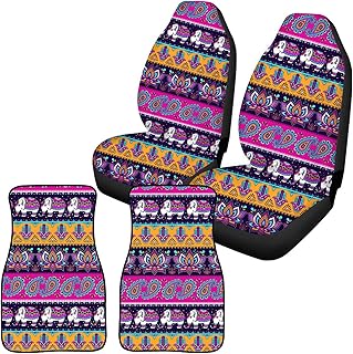 Coloranimal Autositzbezug für Damen, vollständiges Set, 4 Stück, Fahrzeugsitzschoner + Fußmatten aus Gummi, Tribal-Mandala, Elefant