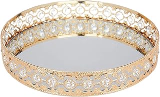 Generic Spiegel Tablett Dekorative Tablett Parfüm Tablett Make Fach Schmuck Tablett Gold Gespiegelt Tablett für Kristall Perlen Eitelkeit, Kommode, Bad, Runde
